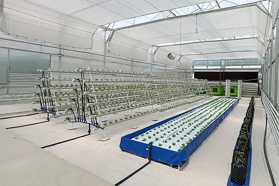 In the system, where soilless agriculture is handled together with aquaculture, the water used in Koi and Catfish farming allows plants such as lettuce, tomatoes, and peppers to grow, and at the same time, the water used is cleaned and reused in the system.