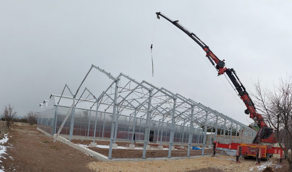 Şiddetli soğuğa ve yoğun kar yağışına rağmen sera inşaatı durmadı ve devam ediyor. Metal gövde, ısıtma sistemi, depo ve ofis tamamlandı. İnşaat sürecinin yakında tamamlanması bekleniyor, serada bitki yetiştiriciliği hemen ardından başlayacaktır.